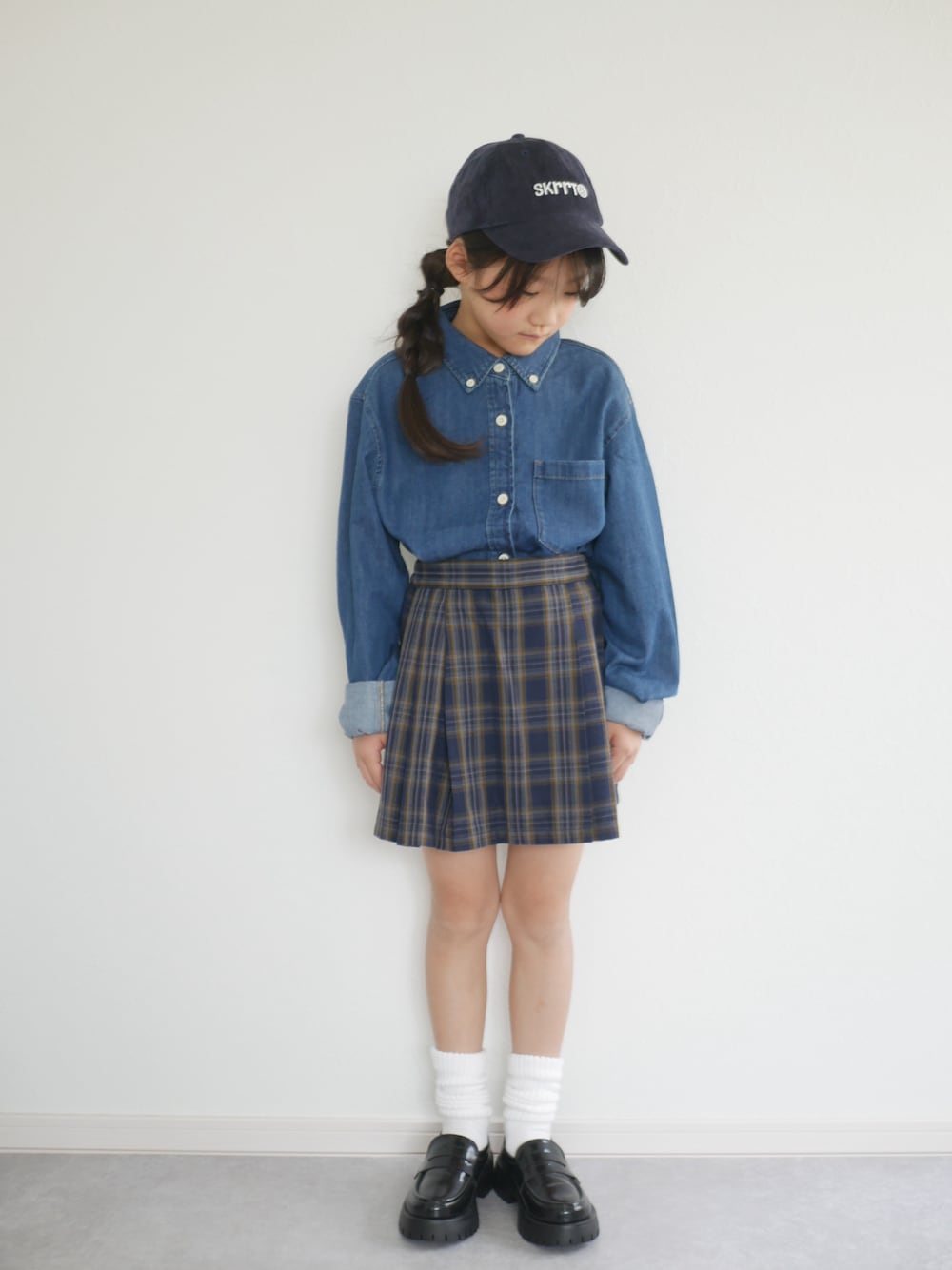2025.10.14 navy ブルーのワントーンコーデ CIAOPANIC TYPYの コーデュロイキャップ ネイビーに白ロゴがポイントで かわいい 8y ▷ 127㎝