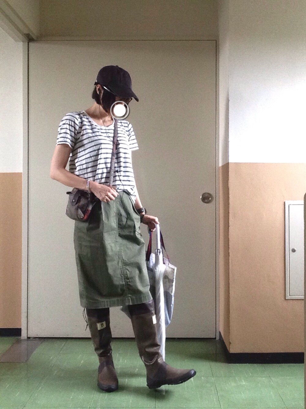 mizのレインシューズ「【日本野鳥の会】ラバーブーツ」を使ったコーディネート