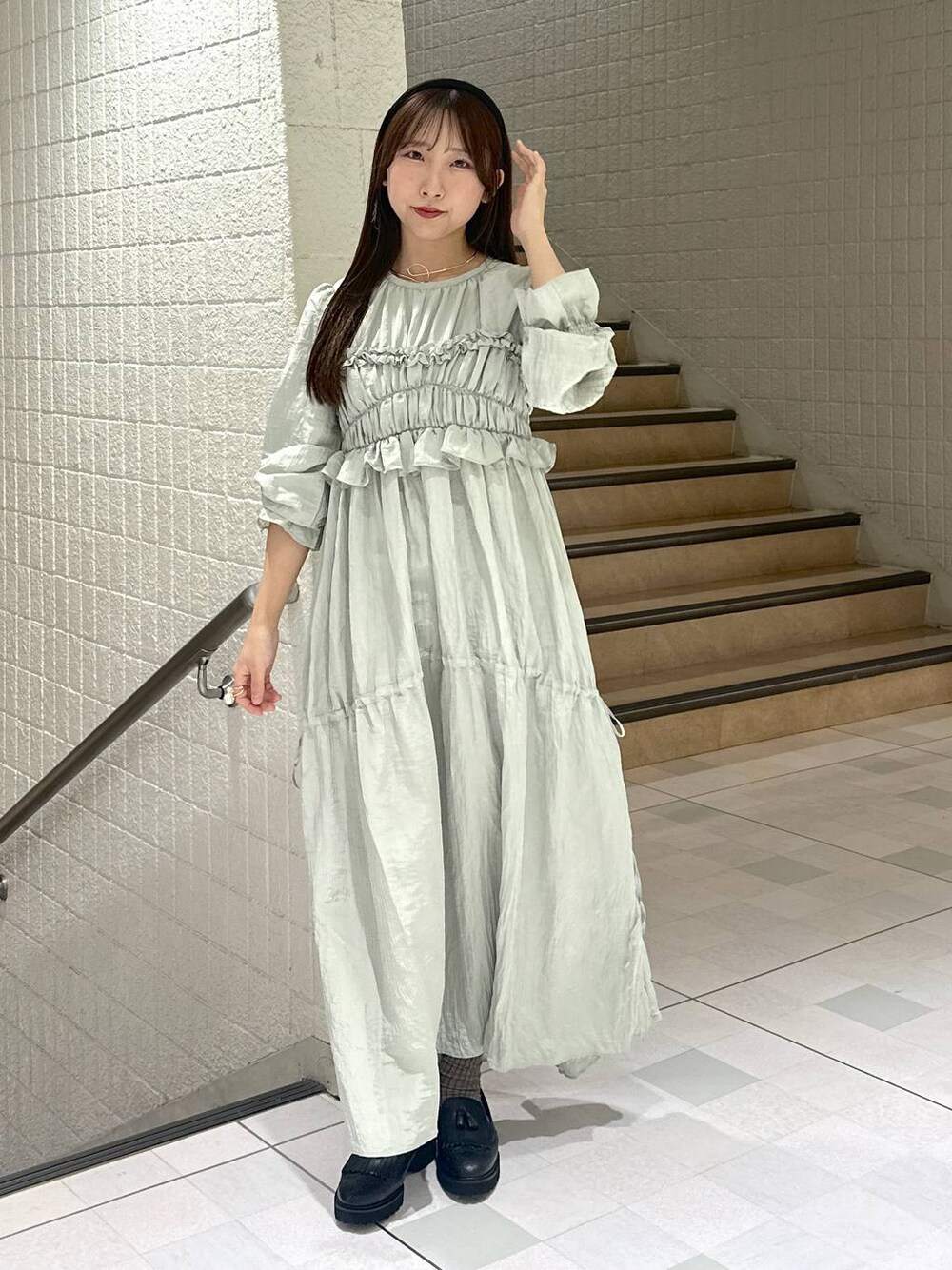 rino(mysty woman新宿ルミネエスト)のドレス「【オケージョン】シャーリングワンピース 242438」を使ったコーディネート