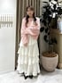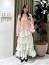 春に着たい柔らかいピンク🩰💞 ワンショルに出来る透かし編みニットがかわいい♡ 🪡各アイテムのおすすめポイント  ̄ ̄ ̄ ̄ ̄ ̄ ̄ ̄ ̄ ̄ ̄ ̄ ̄ ̄ ̄ ̄ ̄ 【トップス】 立体感のあるループ糸が巻き付いた珍しい糸を 使用したゆるニット🧶 春に着られるニットなので今から長く着られます! 柔らかい生地なのでチクチク感もないです! 【スカート】 春先にちょうどいい、軽やかな一枚🌸 アシンメトリーに入ったティアードデザインがポイントで、 4段フリルが動くたびにふわっと揺れるのが可愛い…🤍 でもウエストまわりは控えめだから、 甘くなりすぎずすっきり見えするバランスに。 フリルの長さに強弱をつけているから、 立体感もあってシルエットがきれい。 表地も裏地もポリエステル100%で、 軽やかだけどちゃんと丈夫なのも嬉しいポイント◎