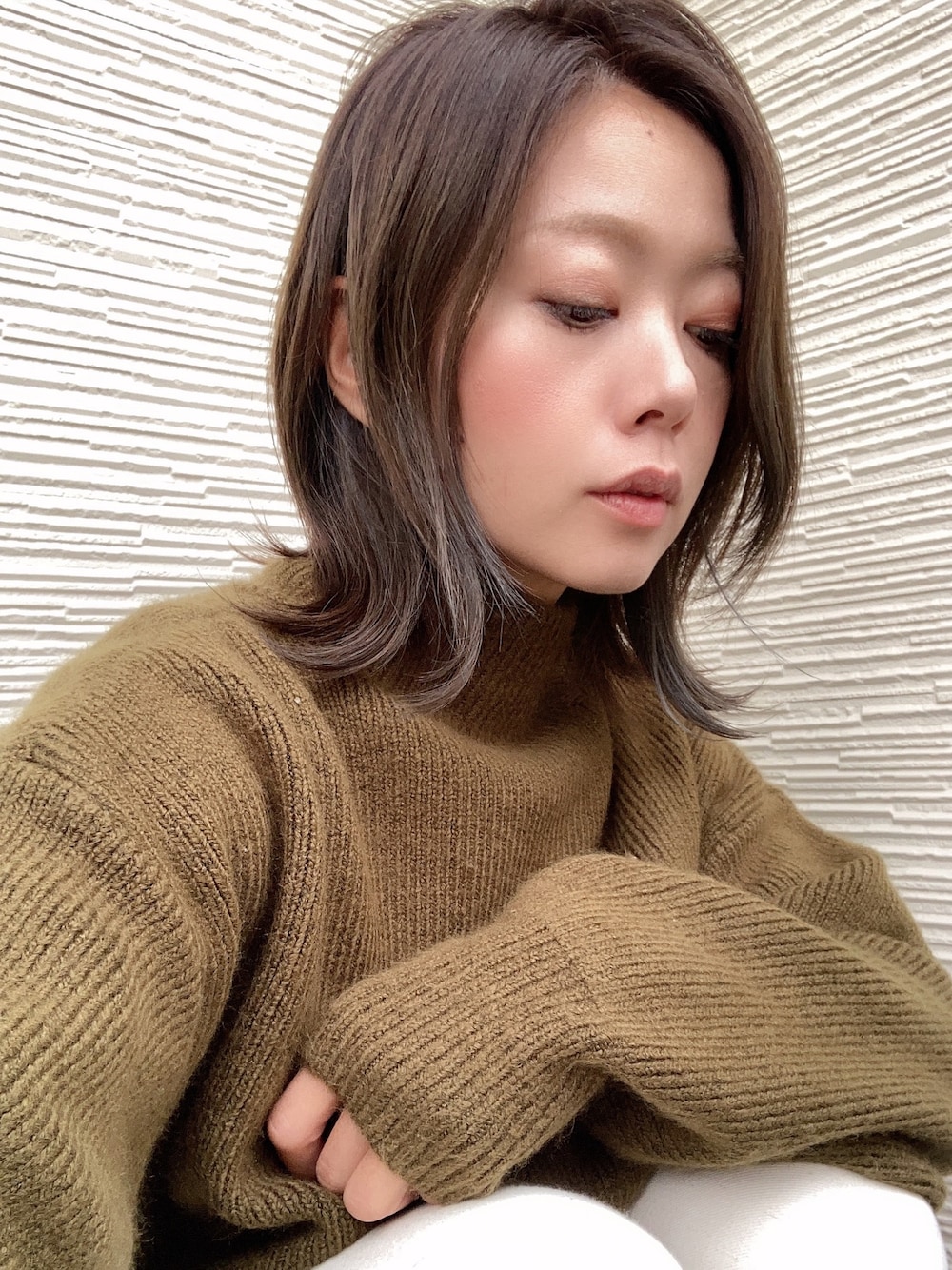 今日も休み! グッとひえますね! このニット母と買い物して母に勧めた後、後日買ったみたいだが、似合わなかったからあげると! 試着すればよかったのに〜!でもうっかり頂けたからラッキー!スリットが入っていて2WAYで着られます!今日はスリット後ろにしています! 髪色冬仕様に!落ち着かせました!暗髪でグレーっぽく!お気に入り!髪はどんどん伸ばすよ!って言われたので伸ばそう!