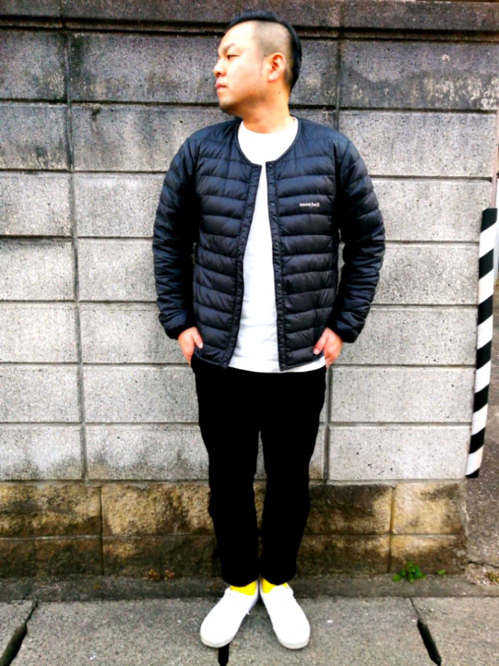 お久しぶりです。今日は暖かいので、インナーダウンをアウター使いで。