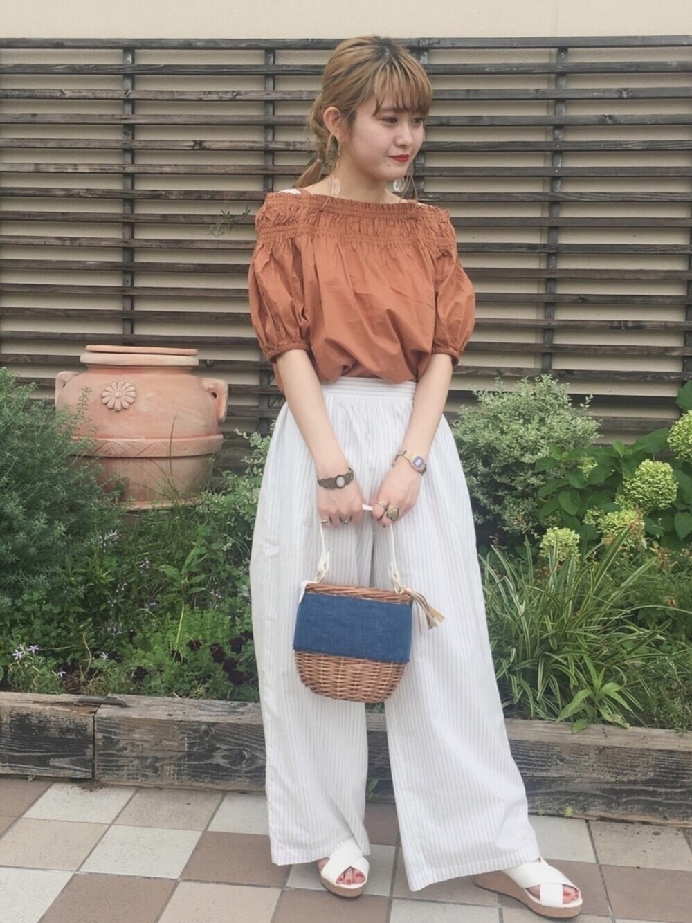 ちひこのシャツ/ブラウス「ボリュームスリーブオフショルダー」を使ったコーディネート
