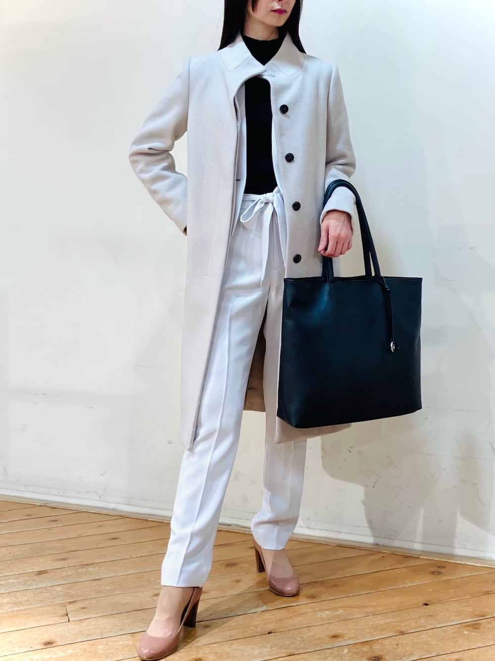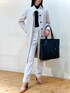 m.tのスーツジャケット「エムエフエディトリアルレディース/m.f.editorial:Women ダブルクロス セットアップ カラーレスジャケット ライトグレー(セットアップアイテムございます)」を使ったコーディネート