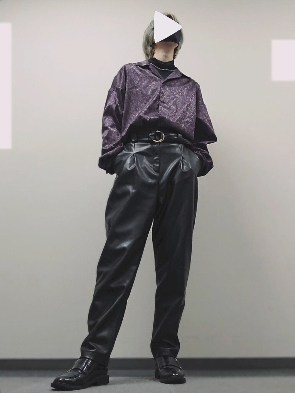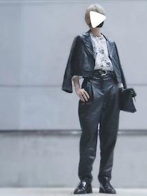 閲覧ありがとうございます! ◎レザーパンツの日 レザーパンツに光沢感のあるペイズリー柄シャツ。 かわいいですねぇ。