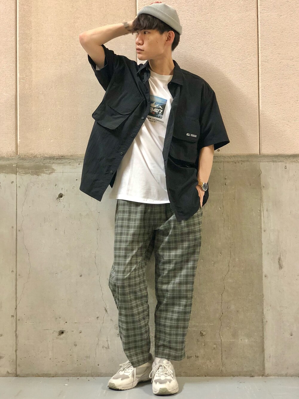 ★フィッシングシャツ★ ゆとりのあるシルエット、大きなポケットが特徴的なフィッシングシャツ◎機能性抜群!シャリっとした生地感でアウトドアにも着用可!着こなし方でカジュアルに、大きめに着こなしてストリート風にも🔥今回はシェフパンツと合わせてストリートコーデ!ウエストゴムで穿きやすさ抜群です!(178cm:トップスLサイズ、ボトムLサイズ)