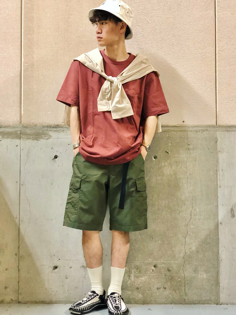 ☆ベルト付きカーゴショーツ☆ ガチャベルトがパンツとセットになったカーゴショーツ🤙今や注目のカーゴパンツは穿くだけで今っぽさと雰囲気が出ます◎程よいゆとりのあるシルエットなので穿きやすく、コーディネイトの幅も広がります!トップスはLevi's「MADE IN THE USA」シリーズからブラウンカラーのTシャツ!USA製コットンで程よい肉厚ながら着心地も抜群です◎1枚でもコーディネイトが様になります🔥(178cm:トップスLサイズ、ボトムLサイズ)