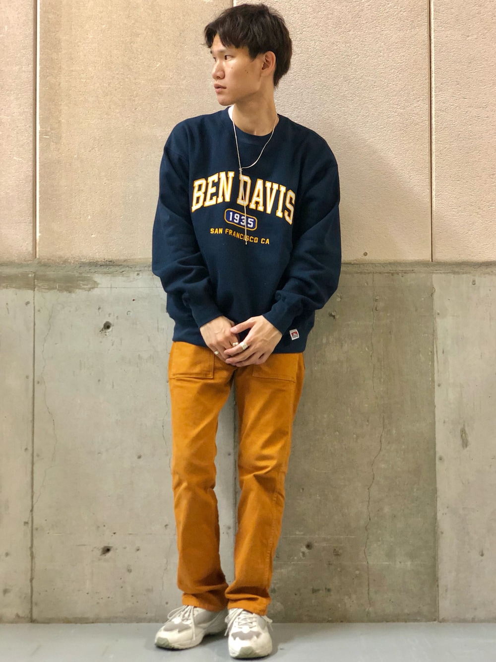 ☆カレッジクルーネックトレーナー☆ 大人気ブランド・BEN DAVISから今トレンドでもあるカレッジロゴデザインがポイントの刺繍トレーナー登場🔥1枚でサマになるデザイン、ストリートスタイルにマッチするアイテム✌️着心地も抜群♪サイズ感も程よくゆとりがあるので今っぽさも演出してくれます☺️ オールドライクな配色が魅力、カラー違いでもほしくなるデザインとなってるのでぜひ1枚これからの季節にいかがでしょうか👀ユニセックスで着るのもおすすめです!(178cm:トップスLサイズ、ボトム30インチ)