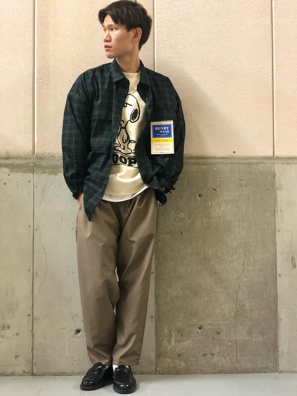 ★ビッグシルエットCPOシャツ★ トレンドのCPOデザイン、ビックシルエットなサイジングが魅力のシャツ✌️アウター感覚としても使えます!サラッとした着心地、カラーバリエーションも豊富で1枚あるとコーディネイトに役立つ万能アイテム♪今の時期は羽織として、冬はインナーとしても重宝します!今回はシェフパンツで合わせた大人カジュアルコーデ👀(178cm:トップスLサイズ、ボトムLサイズ)