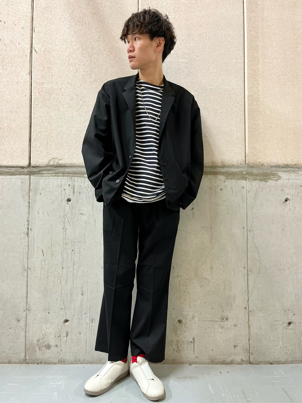 ☆オーバーサイズテーラードジャケット☆ これからの季節にサラッと羽織れるテーラードジャケット👍ややゆったりとしたオーバーシルエットがトレンド感を引き立てます🔥ジャストサイズで着ればきれいめ着こなしに!サイズを上げてカジュアルやストリートチックな仕上がりに👀同素材のフレアパンツで合わせたセットアップコーデ◎すっきり、脚も長く👌インナーをボーダーロンTで大人カジュアルに✌️(178cm:トップスLサイズ、ボトムLサイズ)