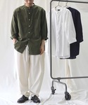 ☆7分袖スタンドカラーシャツ☆ 接触冷感で着心地抜群なスタンドカラーシャツ🔥襟元がスタンド仕様になってるので快適に着ていただけますし、洗濯してもシワになりにくい、レーヨンと麻素材を使用◎軽くて暑くなる春夏季節も楽に着こなしていただけます!気温調整が難しい季節にぜひ1枚あると便利です👍(178cm:トップスLサイズ、ボトムLサイズ)