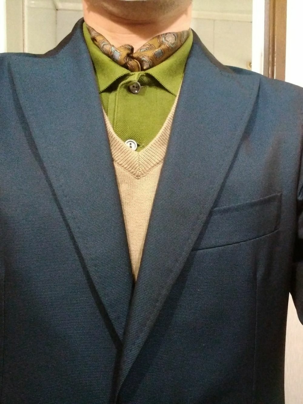 ジャケットはTOMORROWLAND別注のベルベストで、ウール・シルク・ナイロンの三者混生地。 メルカリで新品同様のを格安(多分元値の二十分の一くらい)で買いました。