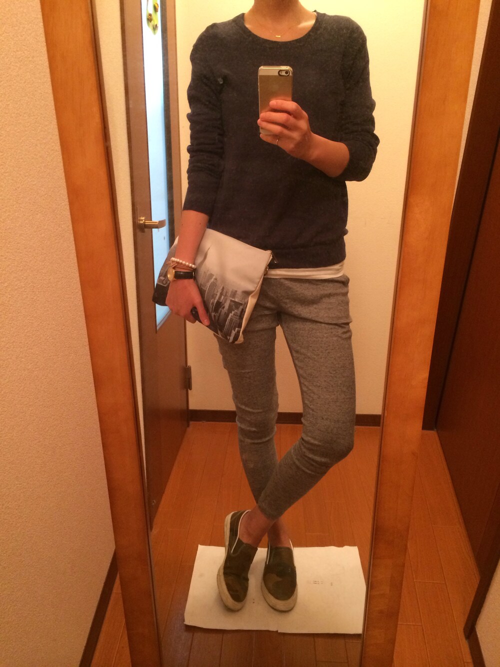ニット…UNIQLO インナー…hollister スウェットパンツ…UNIQLO クラッチバッグ…しまむら