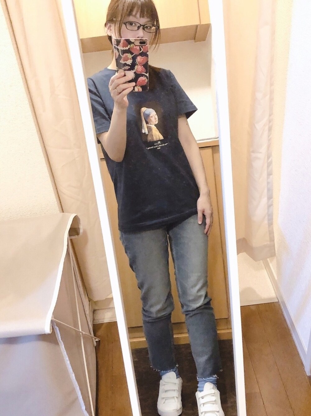 普段デニムは履かないし持ってなかったんですが久々にチープマンデーで購入。 Tシャツは沢山あるけどこの絵の魅力にさからえなかった。イヤーカフ も分かりにくいけどパール系を。眼鏡はリアルの。視力落ちてきて新調しようかな…(老眼がキツイ