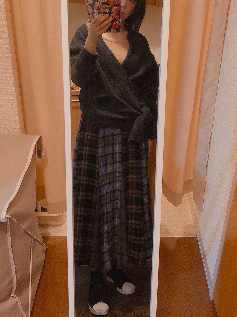 中に着たニット、(福袋)ロイヤルパーティ カシュクールカーデ(フリマサイト)1000円くらい スカート (ZOZOUSED)3600円 以上 KBF ニットをブラウンとしてのコーデ。 ベージュとブラウンの境界線(ラノベ風味 昨日観劇にいって隣に座っていた見知らぬ女性に「芝居中わたしが寝てたら肘かなんかつついて起こしてもらえませんか?昨日寝ちゃったんでもう一回来たんです!」と言われ良い観客だけど、私には優しくないよ!と思いました…笑
