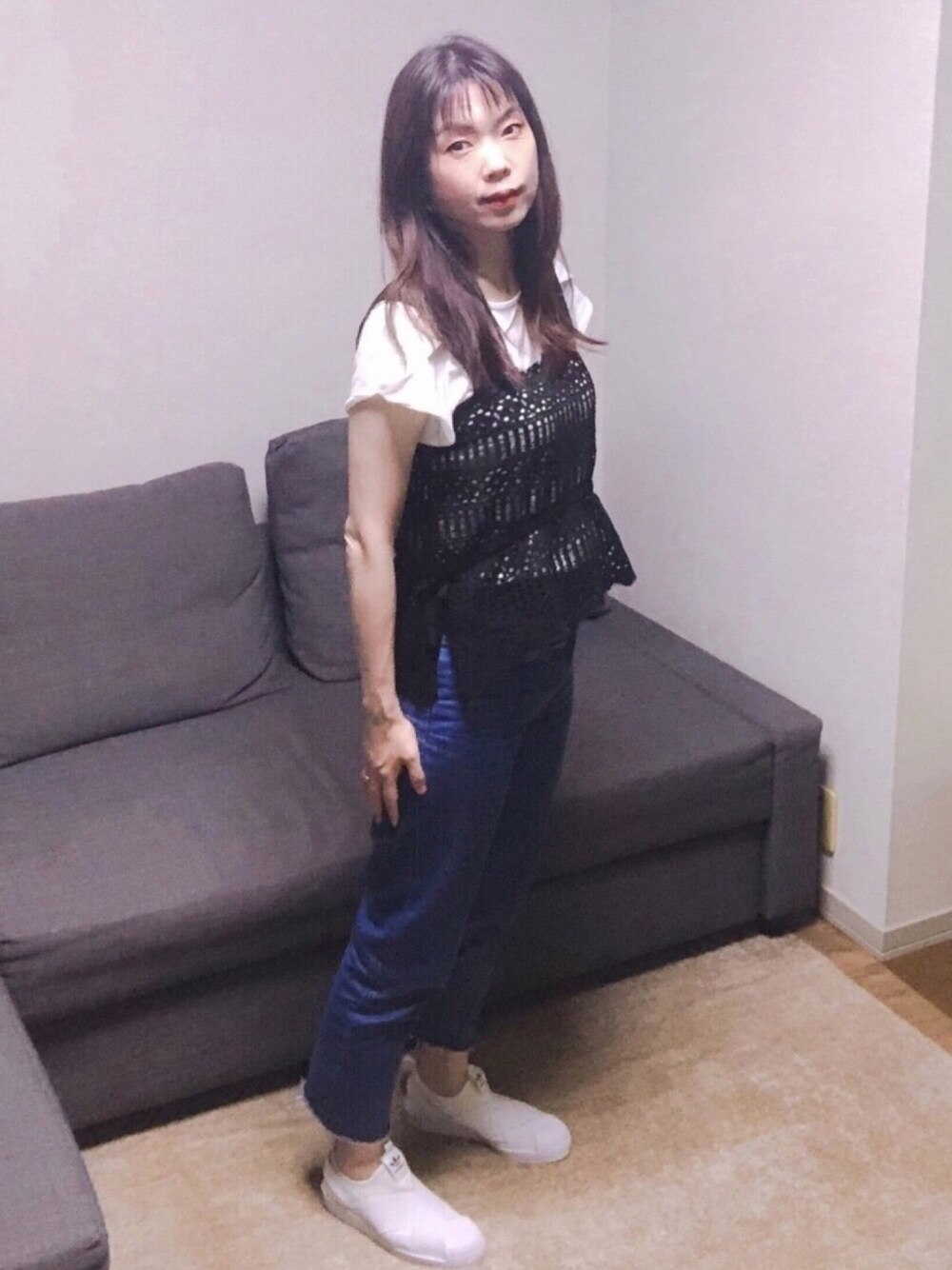 トップス イーハイフンワールドギャラリー レースタンクトップ、デニム KBF masakazuさん、N子さんフォルダインありがとうございます😊 今、デニムはKBFを四本、チープマンデーが一本。 だいたいオンラインで服を買ってしまうのでサイズ見てかうけどやっぱり体型には個性があるから、38サイズだとゆるゆるすぎたり36サイズだとちょっときつい気がしたり、ゆったりシルエットのでも丈短かかったり。難しい。 今日は36サイズ履けるけどやっぱデスクワークするにはぴっちりめ。 私の年代だとオーバーサイズだとなんかどうもしっくりこないと言うか。 アーダーエラーとメゾンキツネ のコラボのTシャツやポロが1番小さくても大きすぎて着こなせるかなあと悩み中。 せっかくの限定コラボなのになあ…。 (定価も高い上に税関手数料今回めちゃとられたわ) 昨日は今週の仕事が終わってから、芝居するときの助手の女の子と半年ぶりに会いました。 可愛い系、カジュアル系の自分ではあまり着なくなったお洋服。 いつもその子には服をもらってもらいます。 身長は私より低いけど顔系統が似てるし、ミニ丈のワンピとかちょうど良い感じなんで、似合うものが似てるので服をあげやすい。 それでも焼け石に水なぐらいまだまだ服が溢れている。やばい。