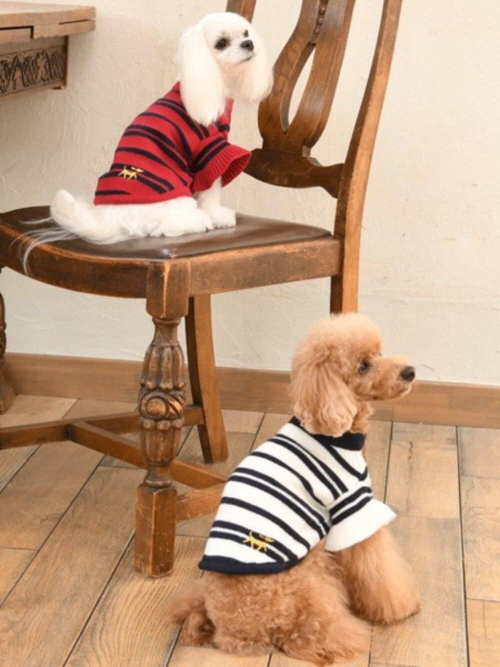 上:マルチーズ / S着用 下:トイプードル / S着用