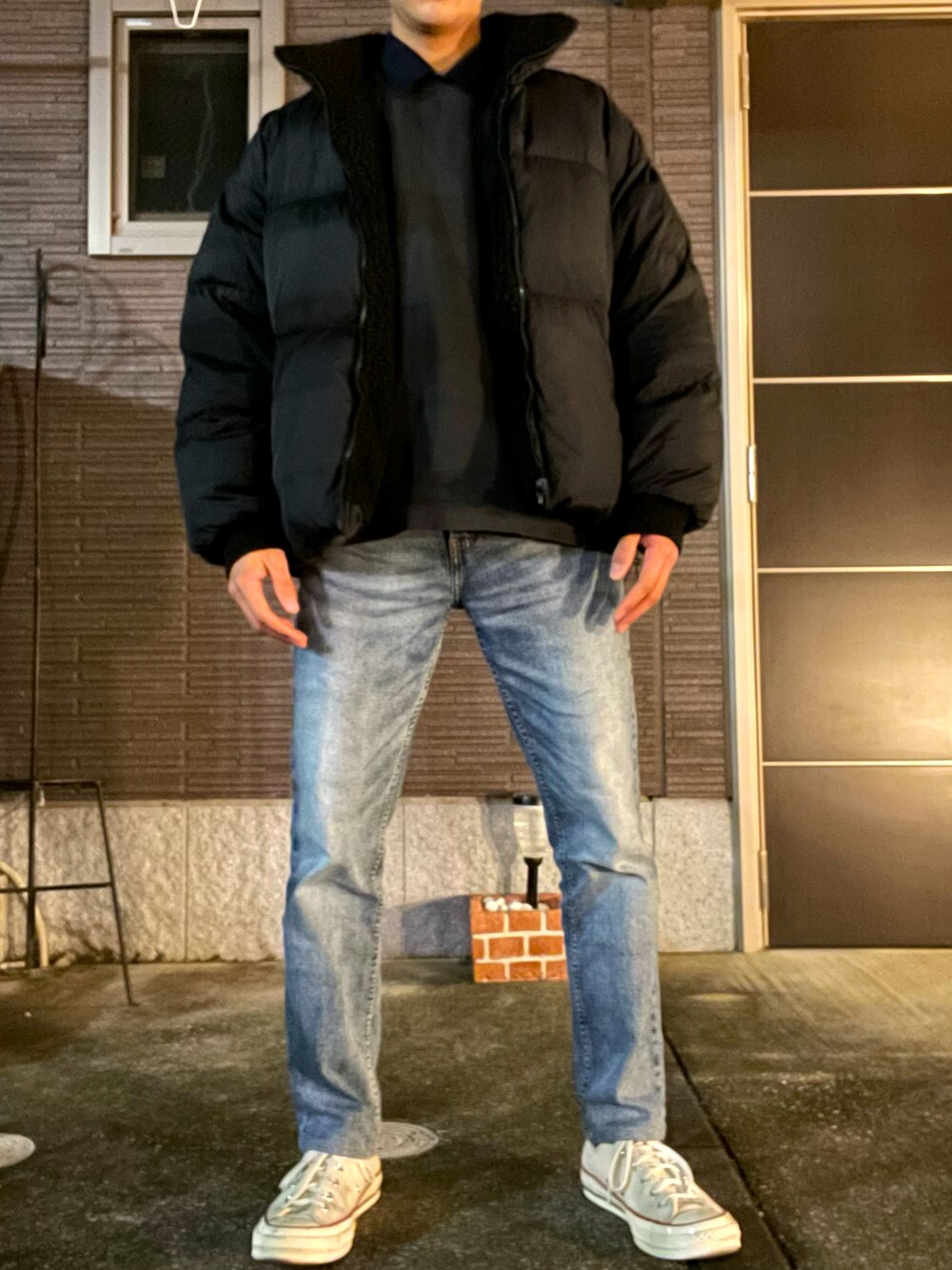 ゆーたのダウンジャケット/コート「Reversible Boa Down Jacket/リバーシブルボアダウンジャケット(ダウン70%,フェザー30%)」を使ったコーディネート