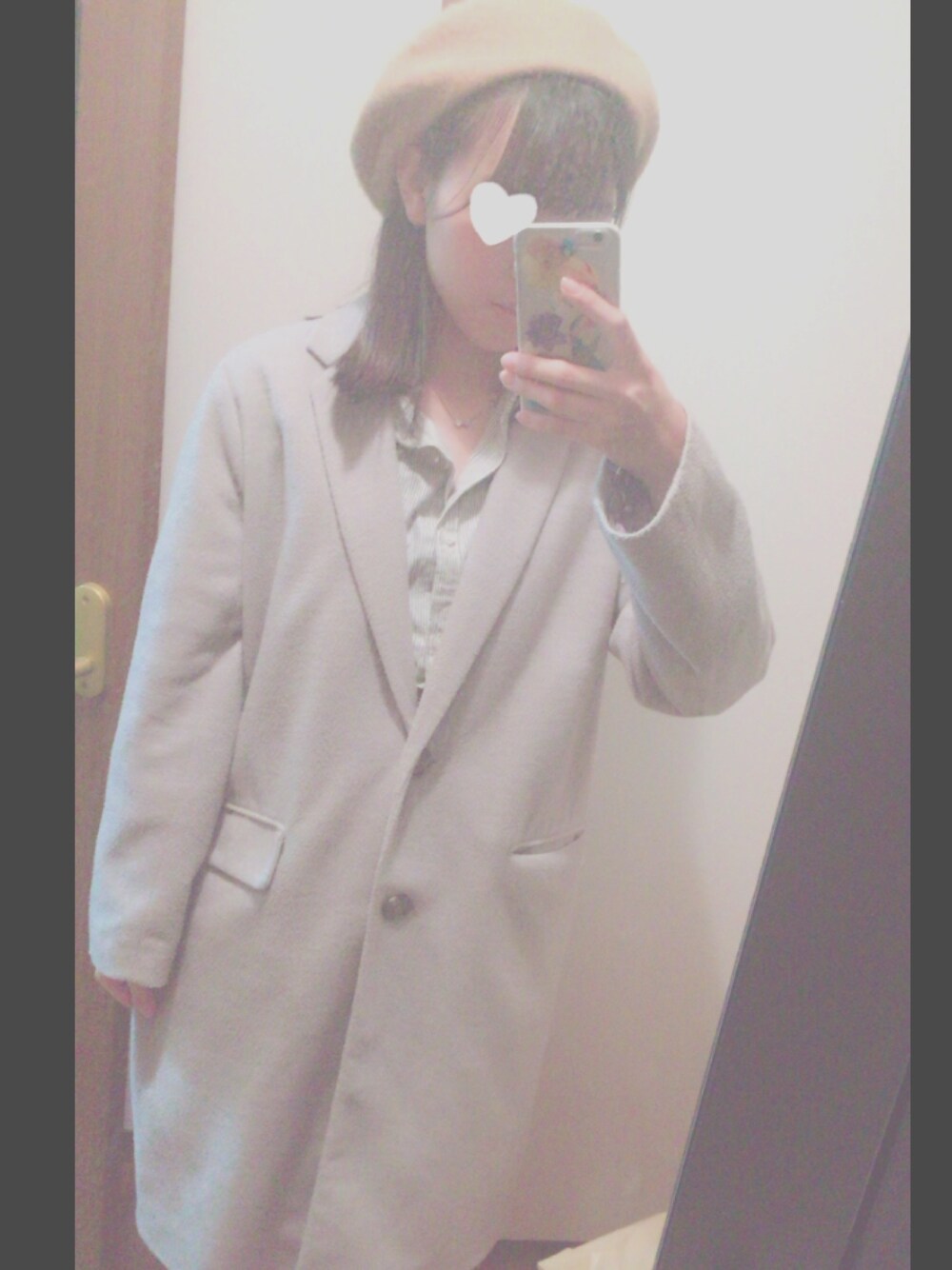 今日は先輩と友達と焼肉🍖 夜だから寒いかなっておもってコートにしてみた! 中は、シャツワンピなんだけど、一枚で着ると結構短いから白いスカートを履いてます😉