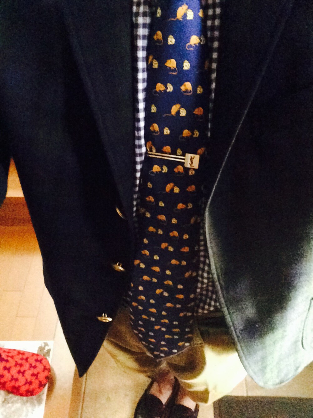 サマーアイビーぶってみた笑 ネクタイの柄にチーズとネズミ! ジャケット:green label relaxing シャツ:ラルフローレン ネクタイ:古着屋(HERMES) タイピン:サンローラン パンツ:UNITED ARROWS ローファー:BASS