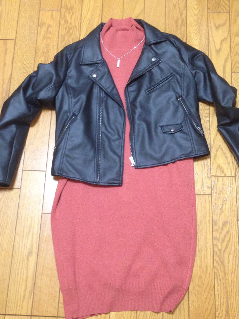 新しく購入したmysticの赤いワンピース。とっても可愛くて一目惚れでした😳 ちょっと寒い海沿いに行く予定だったのと、雨だったのでライダースも。 昨日とは雰囲気が違うかたちで服を選んでみました💓 ちなみに靴はこげ茶のレインブーツを履きました。
