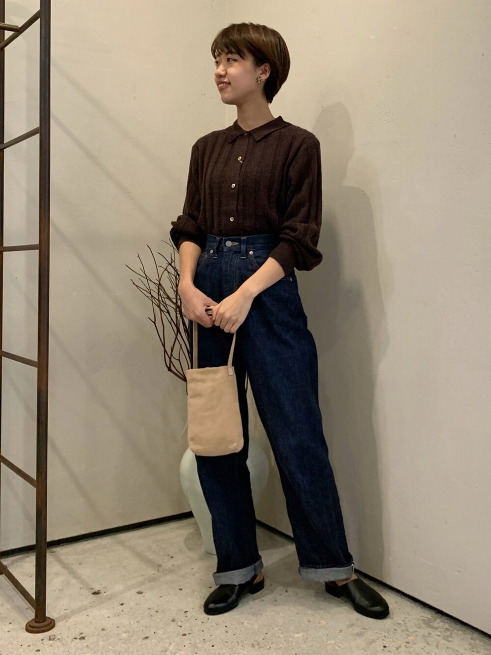 Audrey and John Wad別注のショート丈ニットをインしたスタイル🍪 ブラウンはデニムとの相性抜群で、一気に秋コーデになります! 大人なパンツスタイルをご紹介しました◎