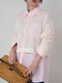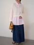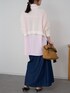 春らしいピンクシャツに、ショート丈ニットを合わせたレイヤードコーデです✨ デニムスカートでカジュアルさを出しつつ、女性らしくまとめた春コーデ🌸