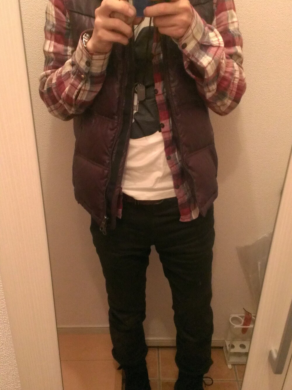 秋っぽくダウンベスト! ただし、人からの貰い物です。