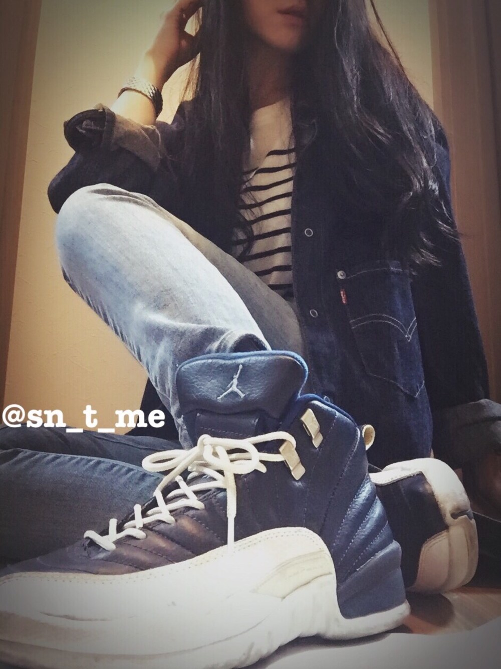 覗いていただきありがとうございます😊 今日は、 NIKE AIR JORDAN12 のオリジナルカラー ネイビー×ホワイトを主役に✔️✨ (ナイキ エアジョーダン12) デニデニコーデに合わせてみました❤️ 詳細はBLOGにupしました👍 プロフィールから飛べます❣️ Instagram:@sn_t_me
