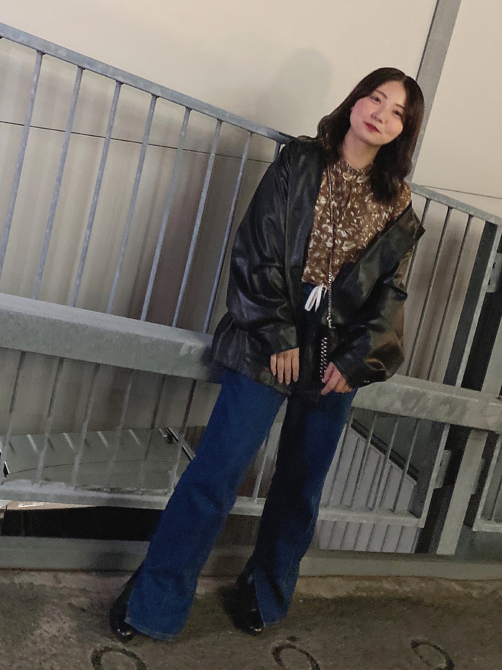 こんばんは🌝 花柄のシャツとレザーってめちゃめちゃ合いますね🥺 冬になると黒着たくなるの何でですかね〜😂