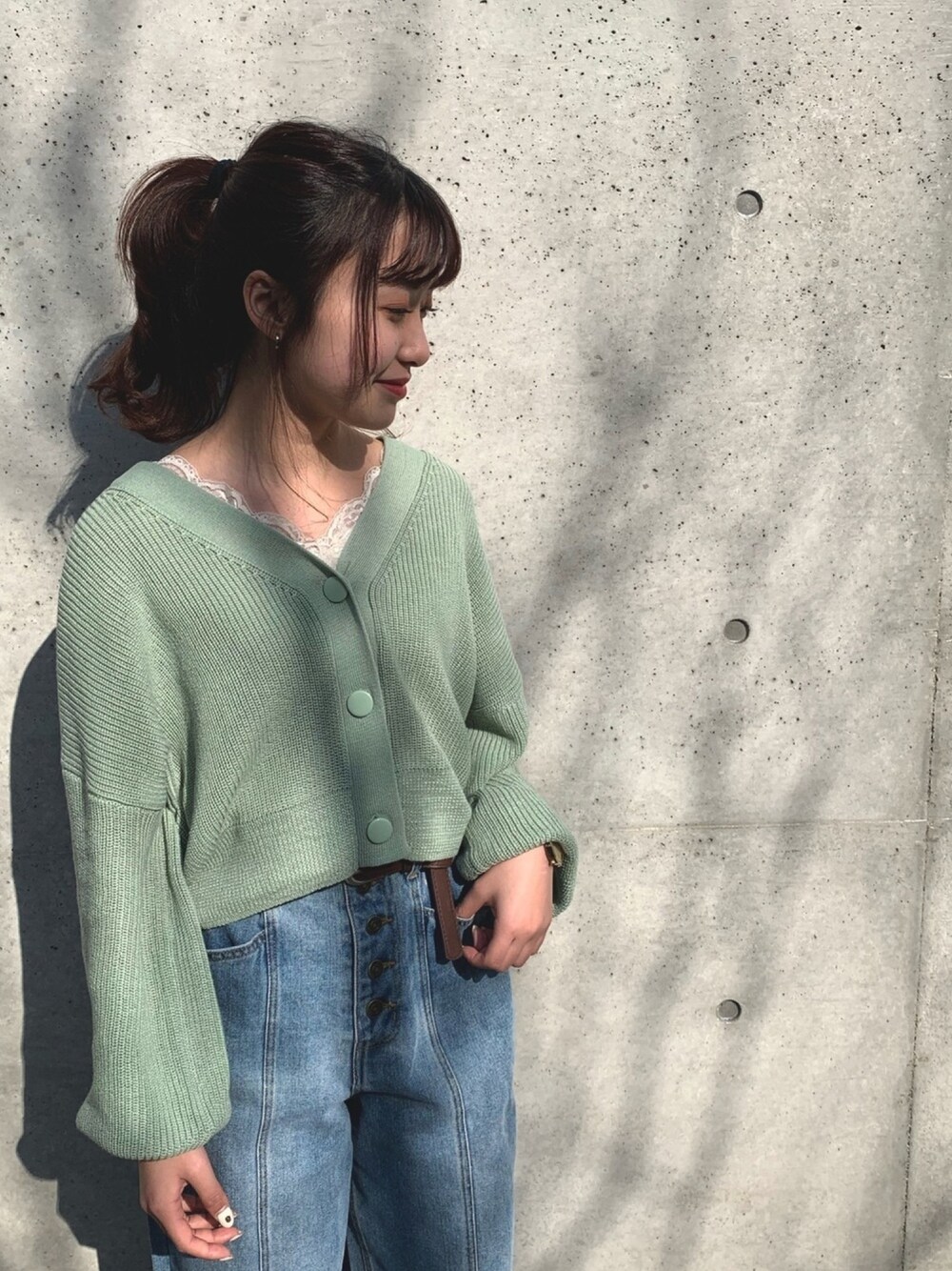 . たぷっとしたシルエット のカーディガンは閉めて トップスとして着用💕 今年はミントグリーン のアイテムが気になる😌