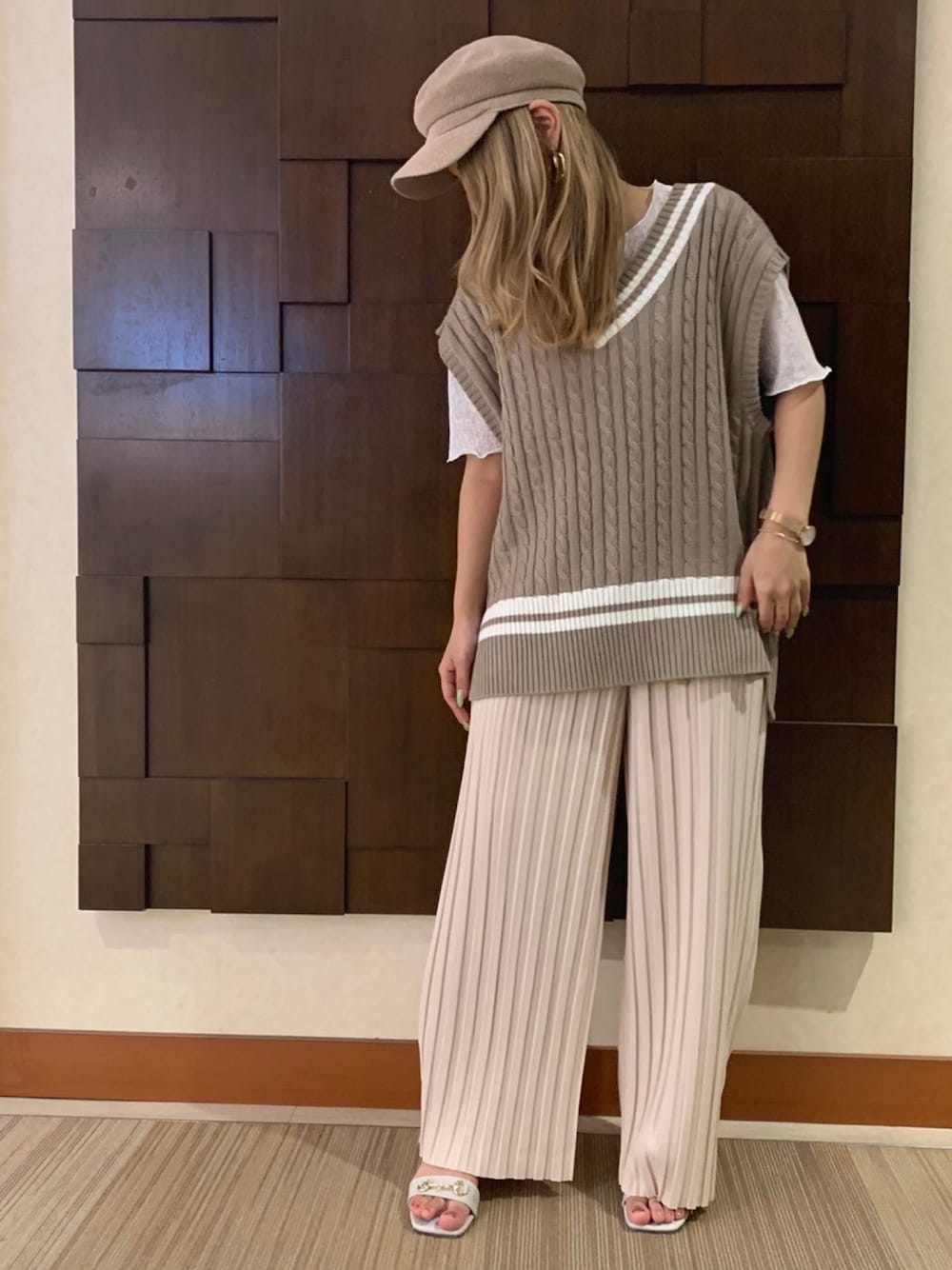 . ちょっとレトロ感のある ラインベストのワントーン コーディネート😊💕