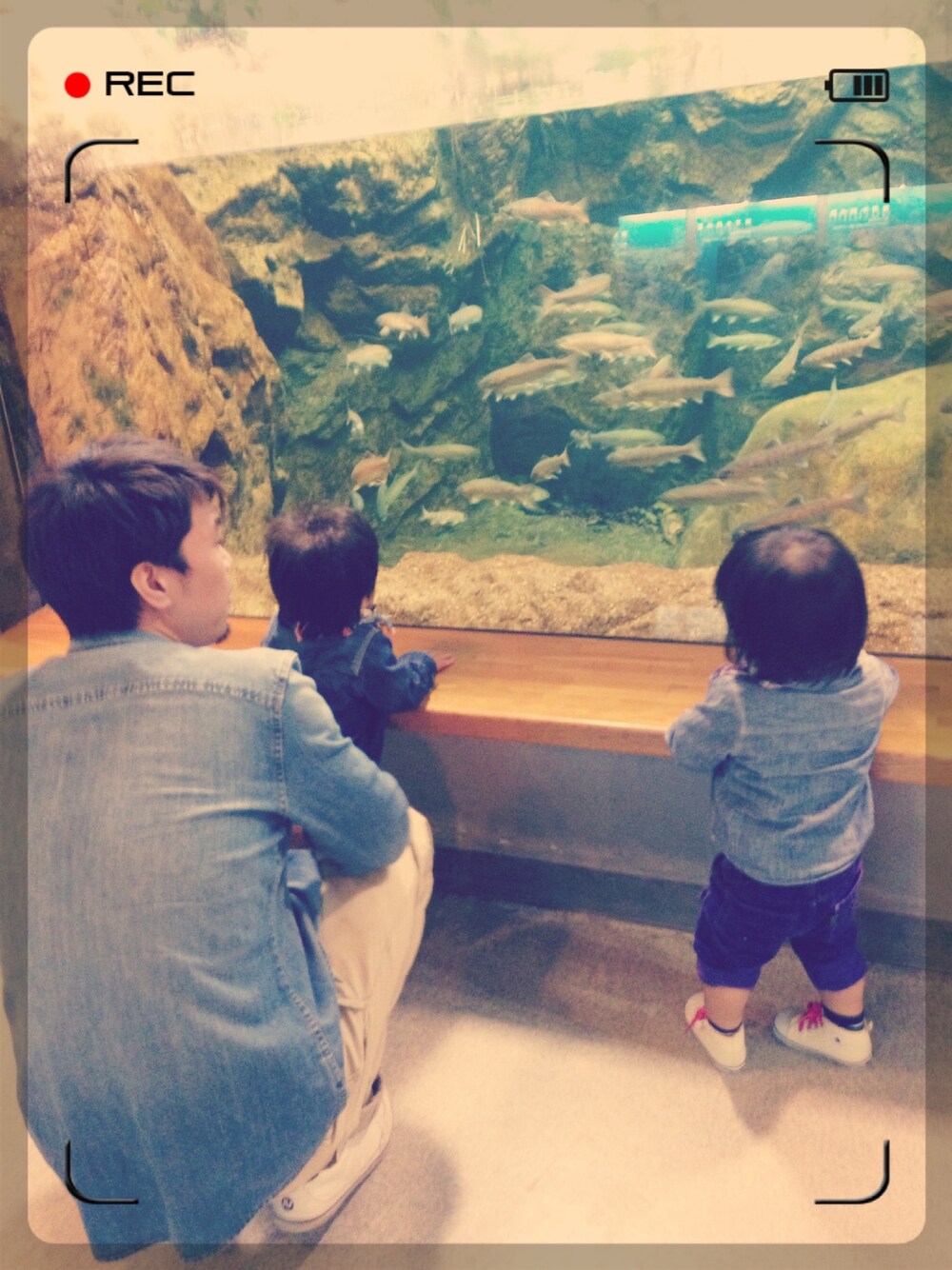 パパと水族館いきました\(^o^)/ デニムシャツ、3人お揃い\(^o^)/