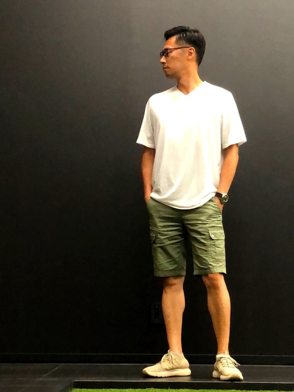ホントならピンクのTEVAサンダルを合わせたいんだけど、さすがに短パン&サンダルは休みの日だけにしようか… ちなみにこのTシャツもサイズ違いで所持。ジャストとリラックスというバリエーションでね。