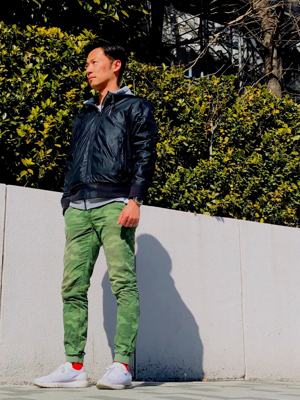 悩んだ…今日は。 ソックスをホワイトにしてスニーカーをレッドにするか。 ソックスをレッドにしてスニーカーをホワイトにするか。 こうやってスナップを見たら… 不正解‼️ な気がする…。
