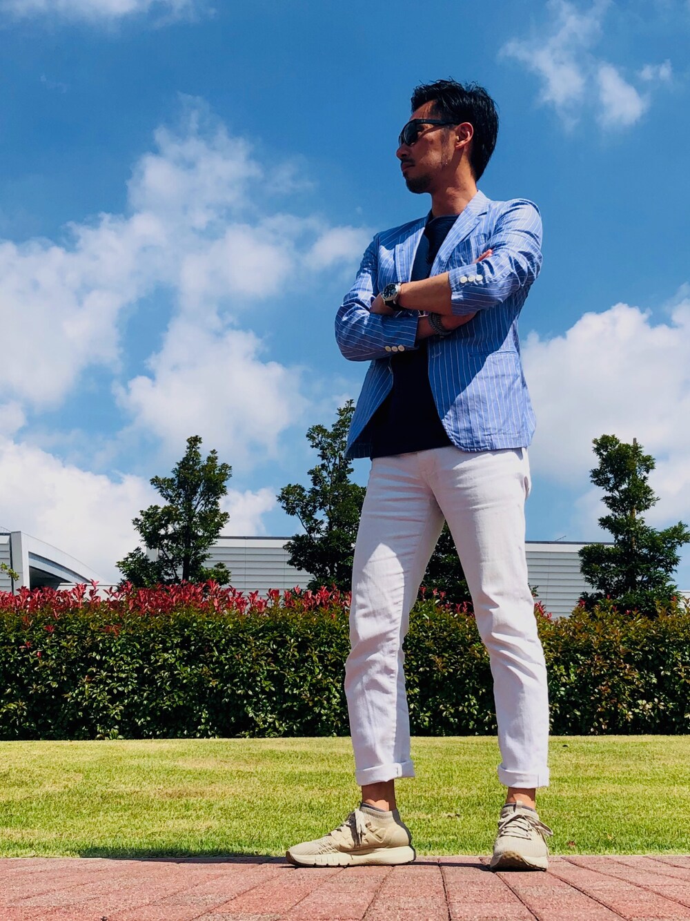 珍しくジャケットスタイルで。 シャツ生地だから涼しくて快適。