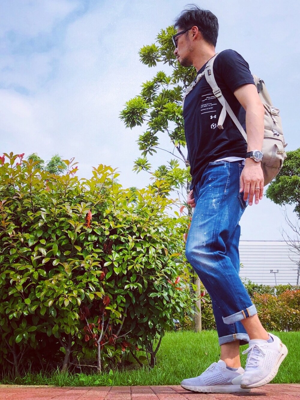 黒T×インディゴデニムのシンプルスタイルで。