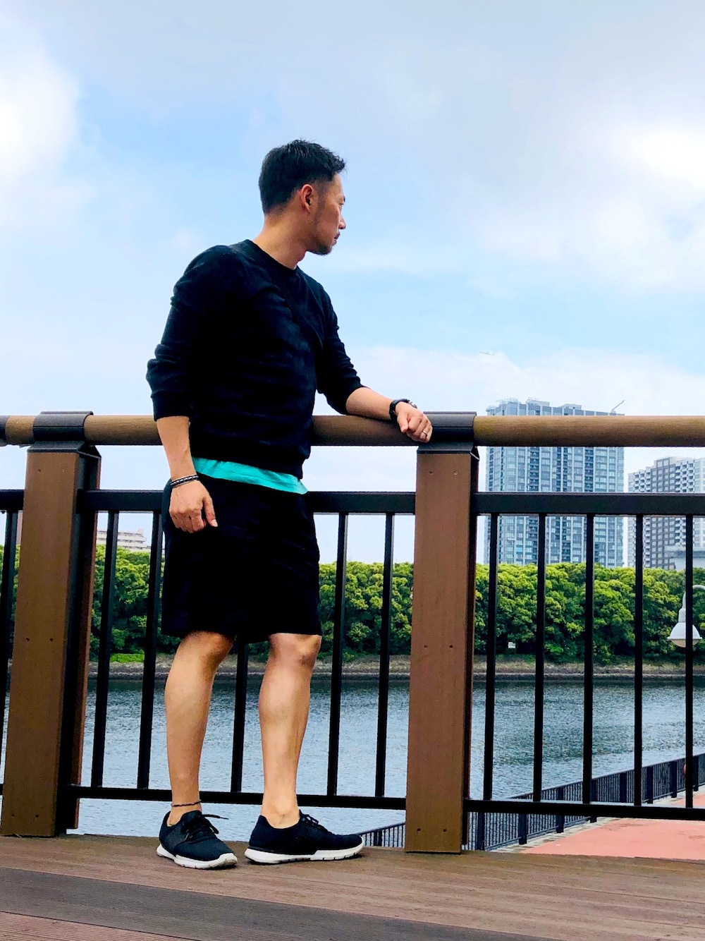 ほぼブラックにTシャツ裾のエメラルドグリーンとソールのホワイトをアクセントに加えた。 スウェットのカモフラももう一つのアクセントにしてるんだけど、写真じゃ伝わらないよね…。