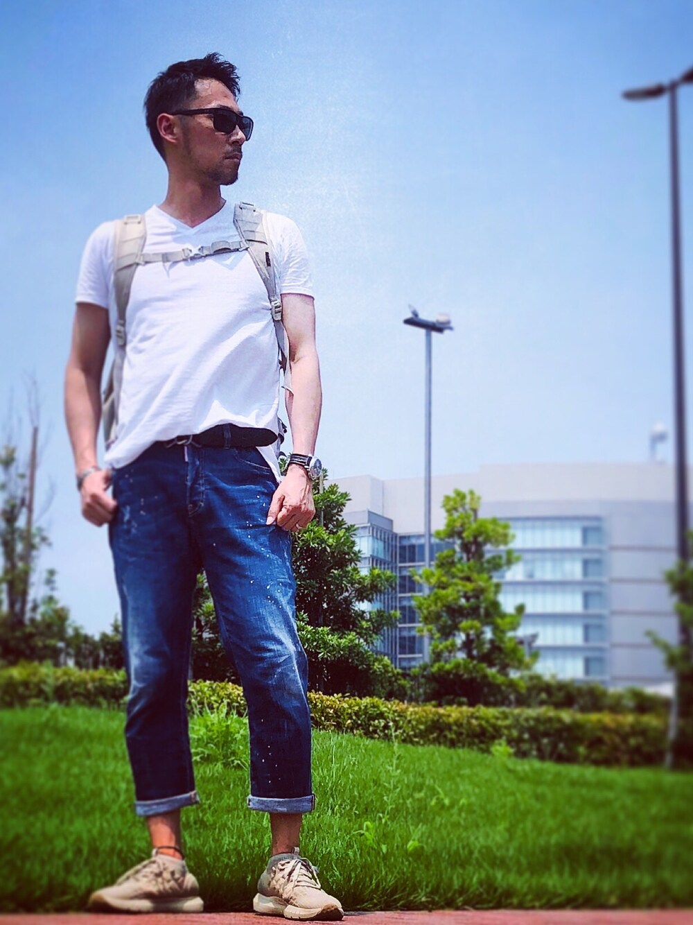 白Tとブルーデニム。