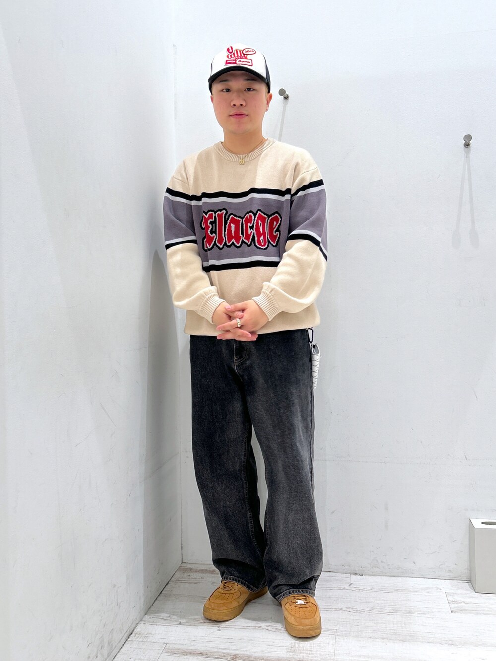 田中翔太郎( XLARGE/X-girlルミネエスト新宿(XLARGE))のニット/セーター「STRIPED CREWNECK KNIT TOP」を使ったコーディネート