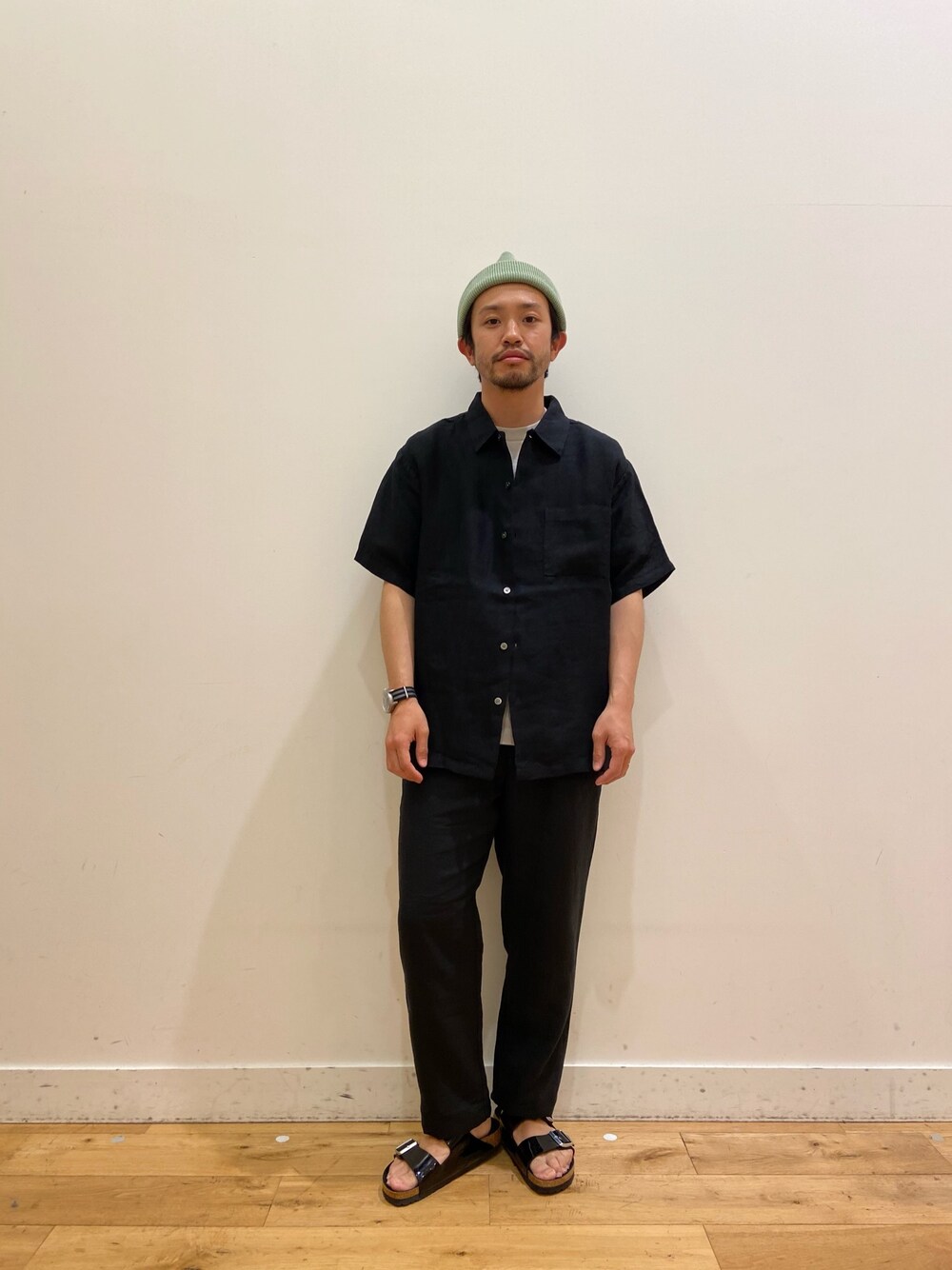 リネンxリネン コーデ 差し色のニットキャップがポイントです! 本格的に麻素材が着やすい時期になりました。 今の時期は風も少しあるので涼しく着れますよ!