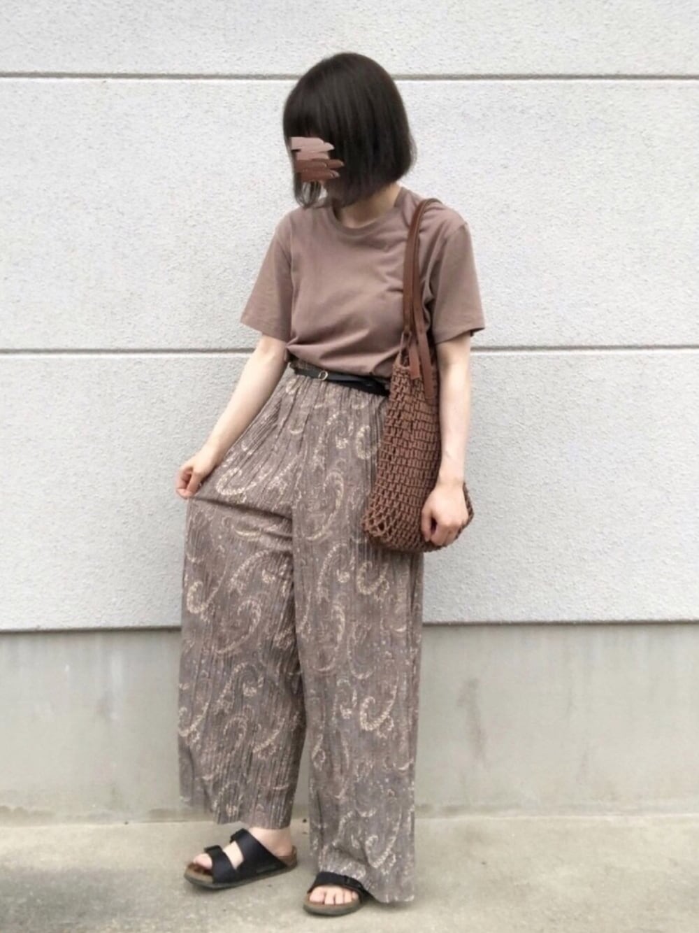 いいね、お気に入り、フォロー いつもありがとうございます☺️ 夏のブラウンコーデ🍃⸝⋆⸝⋆ ペイズリーパンツがよきですね🙆 Instagram tmm_5252