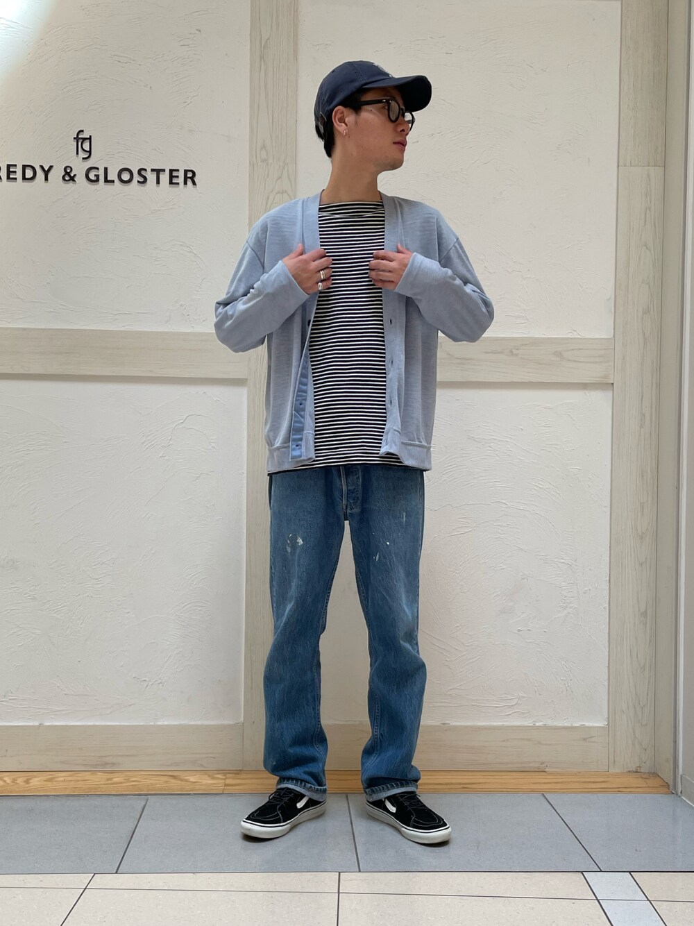 色味が綺麗なカーディガン。 同色のデニムと合わせて。