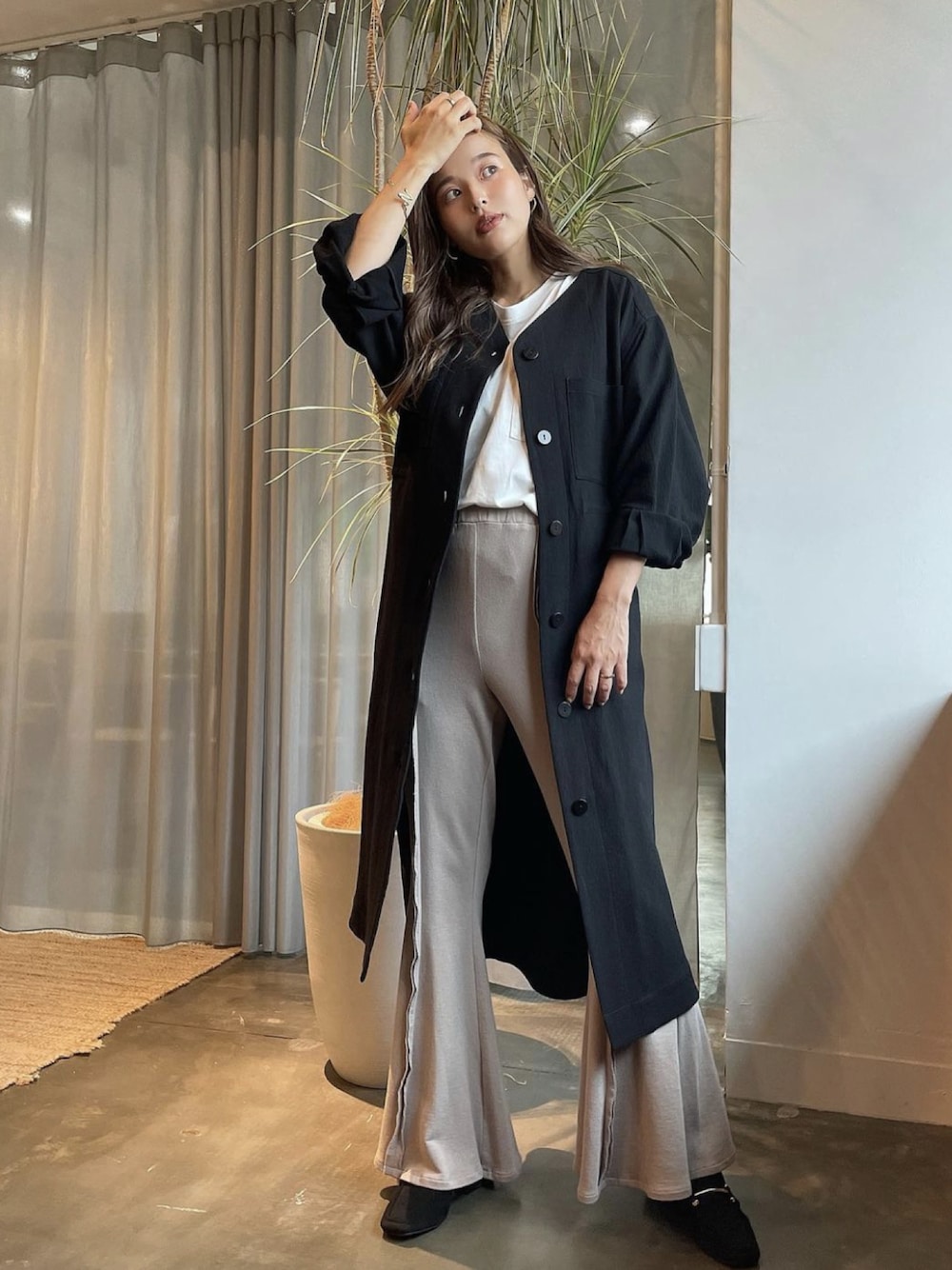TRUNC 88(TRUNC88)のノーカラーコート「Double gauze Safari coat」を使ったコーディネート