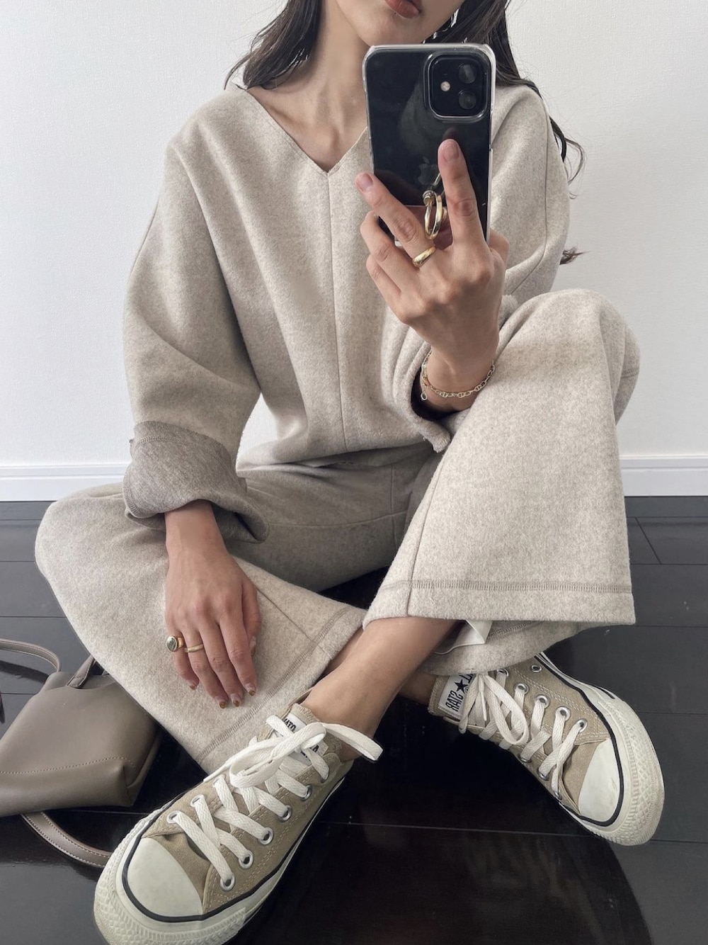 スニーカーにもぴったりな風合い❤︎ 高級感のあるウールライクな素材に 裏地のパイピング仕様やカラーもとっても可愛い❤︎ パンツはゴム仕様でらくちんで スクエア型のポケットやサイドのステッチもかわいい🤍 シルエットを拾わないハリのある素材で仕上げたパンツは 美しいストレートフレアシルエットで着痩せ効果も期待できます🤍 着るだけでオシャレに仕上がるおすすめアイテム❤︎ 別売りですがSETUPが断然オススメ🤍 Director(佐野真依子):162cm