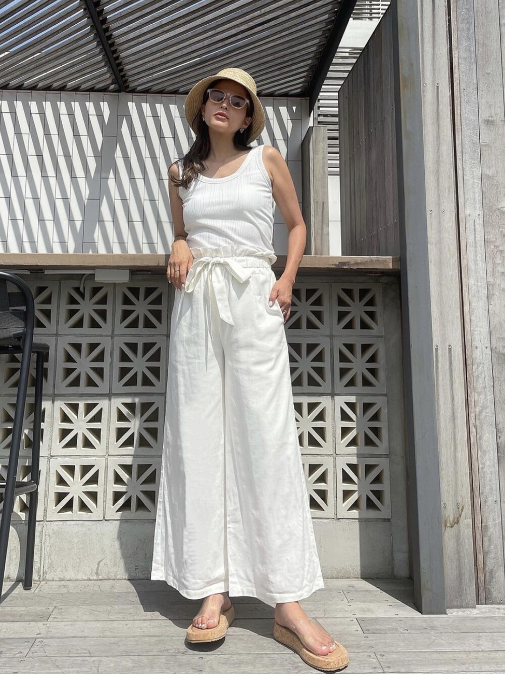 夏のWhiteコーデが 大好きなわたし🌴🤍 Whiteコーデにめちゃくちゃオススメのこのナチュラルワイドパンツ🤍 ホワイトのパンツって透け感が気になったり安っぽく見えたりしやすかったりでなかなか好きなパンツに出会えなかったんだけど これは裏地付きで 透けも気にならないし リネンの天然素材質感で高級感のある最高にかわいい白パンツに🤍 ウエスト部分のディティールで 腰回りを程よく隠せるデザインなのも嬉しいポイント🤍 是非このホワイトパンツ 試して頂けたら嬉しいです🤍 夏でもさらっとした肌触りで 快適で本当におすすめです🤍 Director(佐野真依子):162cm