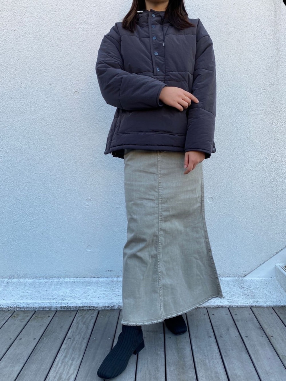 アノラックジャケットにマーメイドスカートを合わせて カジュアルながらも女性らしいコーデに🤍 STAFF:161cm