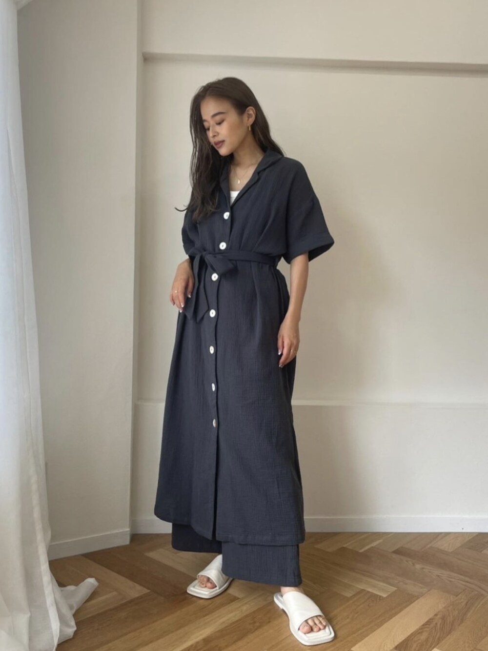 TRUNC 88(TRUNC88)のワンピース「Double Gauze Opencollar Sh OP」を使ったコーディネート