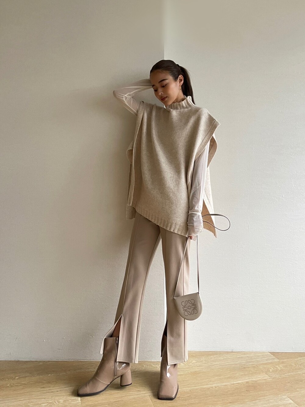 ベージュ系のその他パンツを着用したレディースの冬コーディネートの1枚目の写真