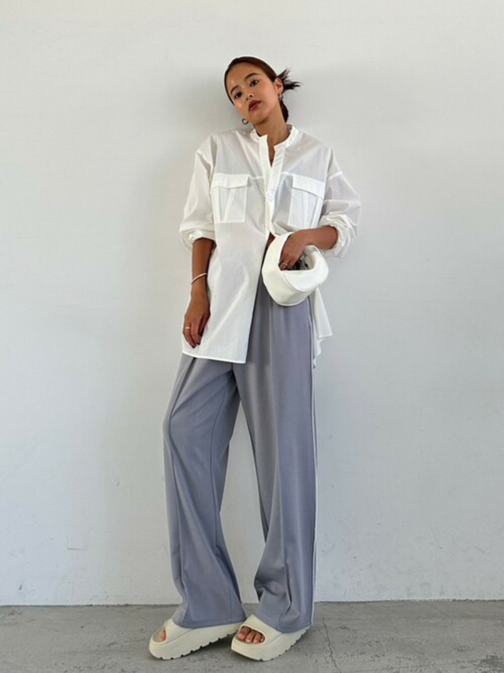 ホワイト系のシャツ/ブラウスを着用したレディースの夏コーディネートの1枚目の写真